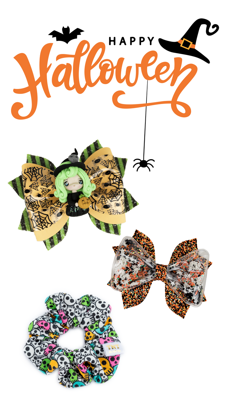 Introducing our spook-tacular "Halloween Collection"! Get ready to enchant the world with our bewitching assortment of hair accessories. With a dash of mischief and a pinch of pumpkin spice, this collection is perfect for adding a spellbinding flair to your Halloween style.